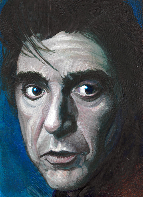 There was no particular reason I painted Al Pacino, other than the photo I used as a reference was one of the first search results for "portrait photo single direct light source."