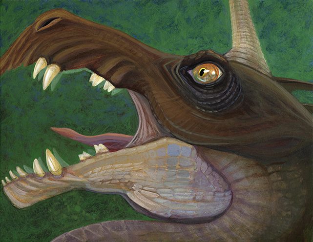 My brother suggested I paint more from my imagination. A decided to paint him a Joyous Unicorn. Since it is from my imagination, its species naturally falls in the Archosauria clade. It's not easy to discern when any species of archosaur is joyful. This one is. (Or the closest thing an archosaur gets to "joy.")