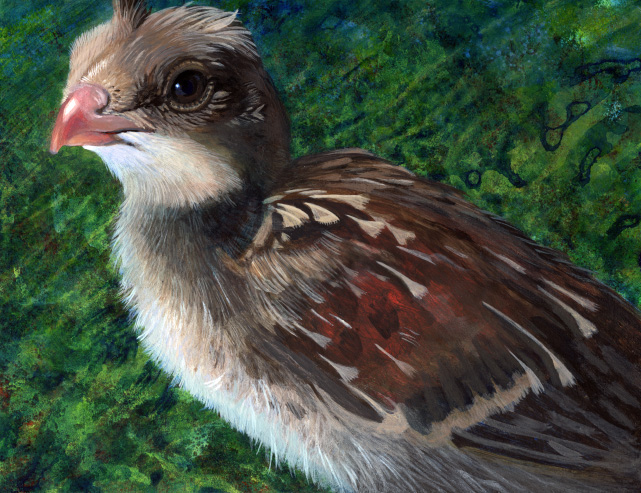 A Quail Chick (for Mom). Acrylic on masonite, 6"x8".
