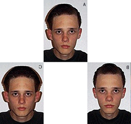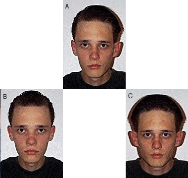 When I was (much) younger, and I'd first read about bilateral symmetry in biology (and its influence in sexual selection), I decided to experiment. I took a photo of myself and divided up the halves. I was surprised at the disparity. How different a life might B have compared to C? And either compared to A?